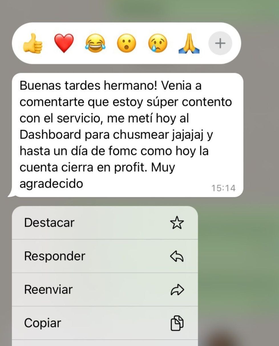 Todos los días vas a recibir avisos de las operaciones que el bot de Funded Vip realiza en el mercado