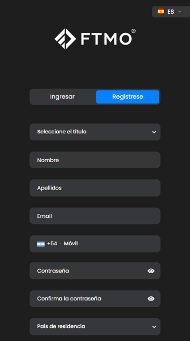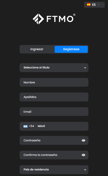 Crear una cuenta de trading con FTMO es realmente sencillo y no requiere ninguna documentación de tu parte, solo algunos datos personales.