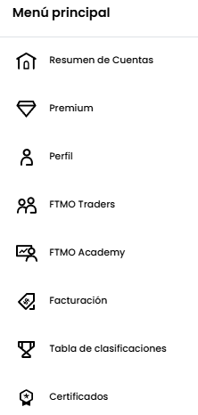 Estas son las dos principales opciones que tienes dentro de la plataforma de FTMO: