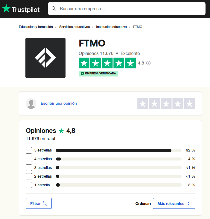 En nuestro caso, preferimos operar con la empresa de fondeo FTMO (la más grande y prestigiosa hasta el momento), por varias razones.