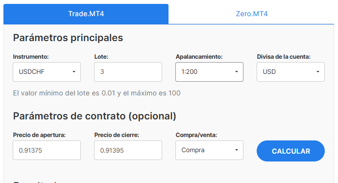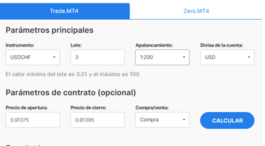 Para saber exactamente cuánto dinero estás colocando en una posición, puedes utilizar una calculadora de lotes como la que ves en la imagen.
