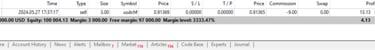 La pestaña de «Trade», como vemos en la imagen, te mostrará el balance de tu cuenta, el margen de la misma, y tus operaciones abiertas.