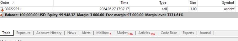 Luego de que hayas ingresado la orden al mercado, esta aparecerá en la pestaña «Trade» de la consola en la parte inferior de la plataforma.