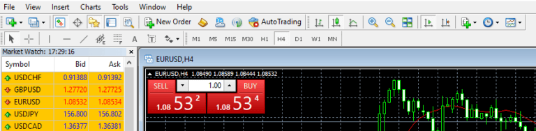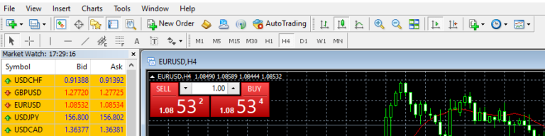 👉 En la primera línea, «File», «View», «Insert», «Chart», «Tools» y «Window» te ayudarán a personalizar la plataforma a tu gusto.