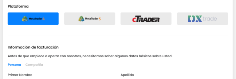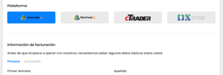 Luego de seleccionar el tipo de cuenta, deberás completar algunos datos personales de facturación.