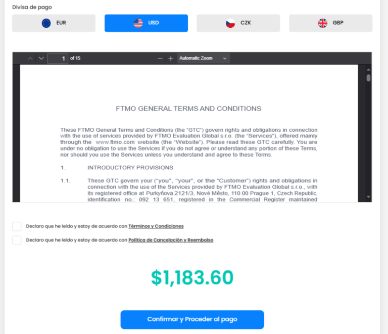 Y, aunque resulte aburrido, te recomiendo darle una mirada al acuerdo de términos y condiciones de FTMO.